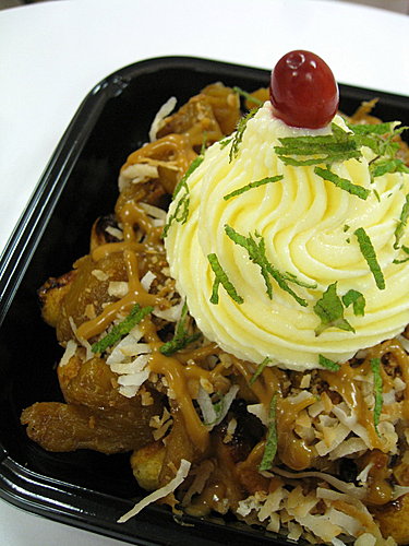 如此,這麼一道充滿南國風情,卻深具台灣本土內涵的鳳椰騷莎比利時列日鬆餅就此完成就算是薛家燕前來,也得潸然落淚‧‧‧‧